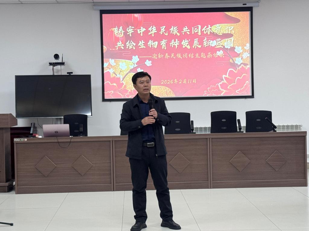 2026年2月11日下午,生物育种实验室党支部举办以“铸牢中华民族共同体意识共绘生物育种发展新蓝图”为主题的迎新春民族团结主题茶话会。院党组副书记、院长余庆辉同志参加了本次活动,与生物育种实验室全体干部职工、长聘人员及学生欢聚一堂、共迎新春、共话发展。