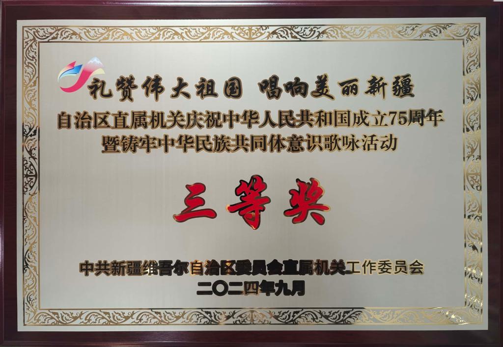 近日,由自治区党委直属机关工委举办的“礼赞伟大祖国 唱响美丽新疆”自治区直属机关庆祝中华人民共和国成立75周年暨铸牢中华民族共同体意识歌咏比赛圆满落下帷幕,81家区直单位、5800名各族干部职工积极参与。经过预赛、决赛紧张而激烈的角逐,自治区农业科学院合唱队荣获三等奖,并受邀参加自治区“天山儿女把歌唱”展演活动。
