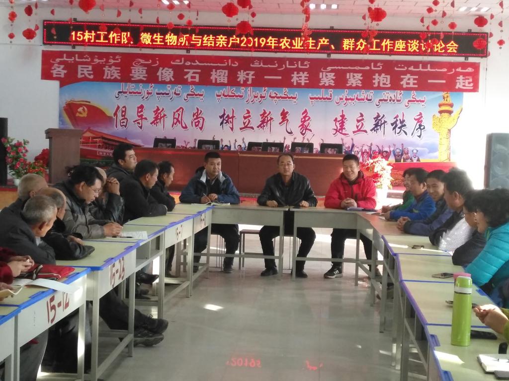 11月13日下午,微生物所在第六轮“结亲周”活动间隙,与15村工作队和结亲户代表共同召开2019年农业生产和群众工作座谈会,大家欢聚一堂,踊跃发言,感党恩、促生产、勤致富,在轻松愉快的气氛中共叙2018年农业生产致富脱贫的心得体会,共谋2019年致富新思路,表达了新时代农民对美好生活的向往。