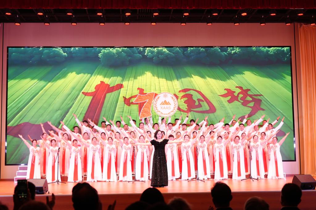 在喜迎新中国成立76周年、自治区成立70周年之际,新疆维吾尔自治区农业科学院也迎来建院70周年。为充分展现新时代农科干部职工爱党爱国、团结奋进的精神风貌,9月30日上午,自治区农科院“七十华章·农科壮歌”文艺汇演在热烈氛围中隆重举行。院领导班子成员、各机构负责同志及全体在家职工近800人共同参与本次活动。