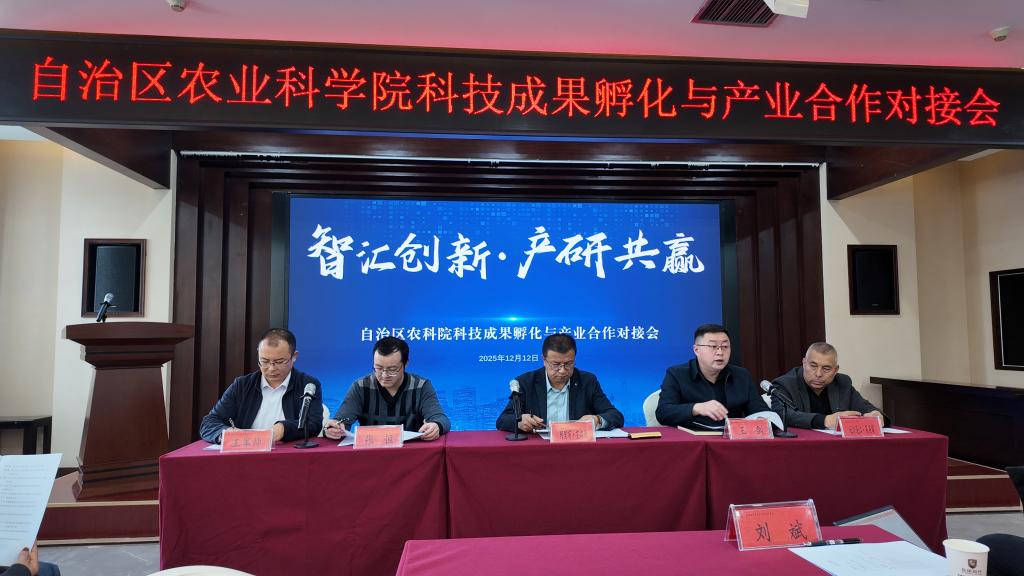 为推动产学研深度协同,搭建科研单位与企业交流合作平台,强化创新链与产业链融合,促进先进科技成果产业化转化,12月12日,自治区农科院科技成果转化部在科技成果孵化与产业合作中心成功举办“智汇创新・产研共赢”科技成果孵化与产业合作对接会。院党组成员、副院长阿里甫·艾尔西应邀参加会议,院科技成果转化部、合作交流部、院属研究机构相关领导、专家及涉农企业负责人等80人参加会议。