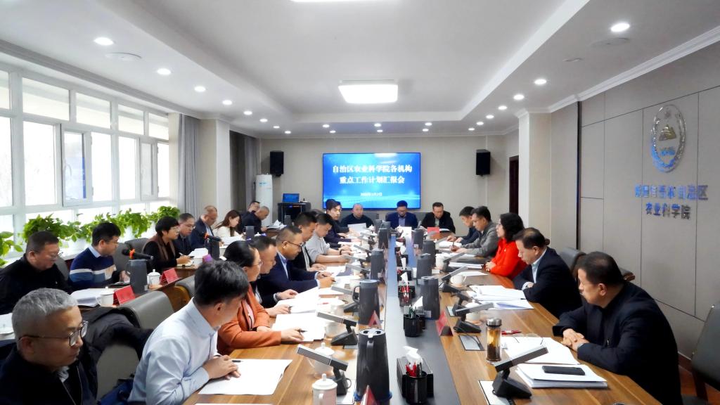 3月2日至3日,自治区农科院召开2026年度重点工作计划汇报推进会,深入贯彻落实中央和自治区党委农村工作会议精神,落实落细“改革引领突破年”各项工作,系统谋划、扎实推进“十五五”规划实施。院党组书记、副院长马缨主持会议,院党组副书记、院长余庆辉及院领导班子成员、各机构负责人参加会议。