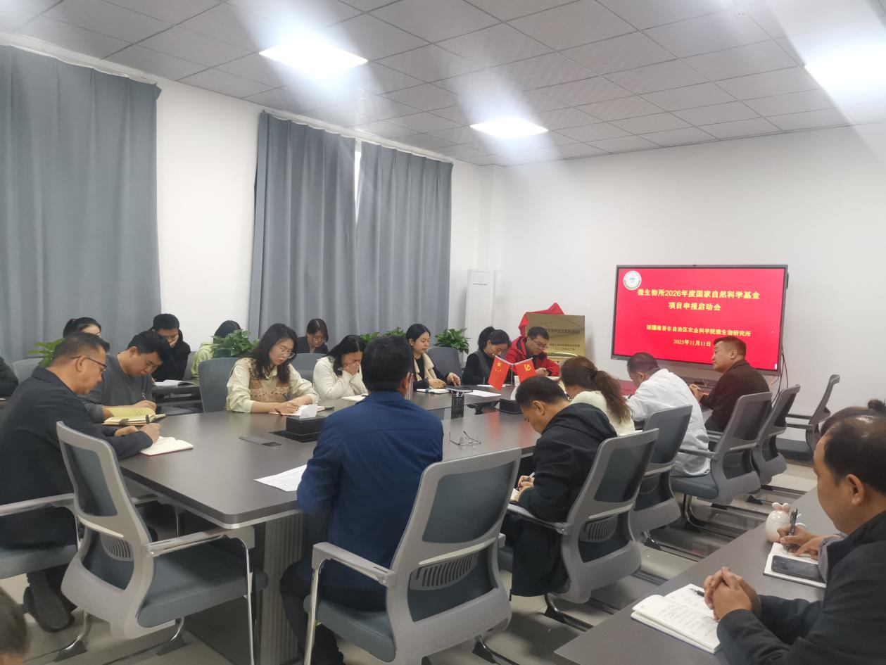 2025年11月11日,自治区农科院微生物研究所组织召开2026年度国家自然科学基金项目申报启动会,全面部署新一年度基金申报工作。会议由微生物所所长冯耀祖主持,所领导班子、各团队首席副首席、科研骨干及近年新引进博士等35人参会。