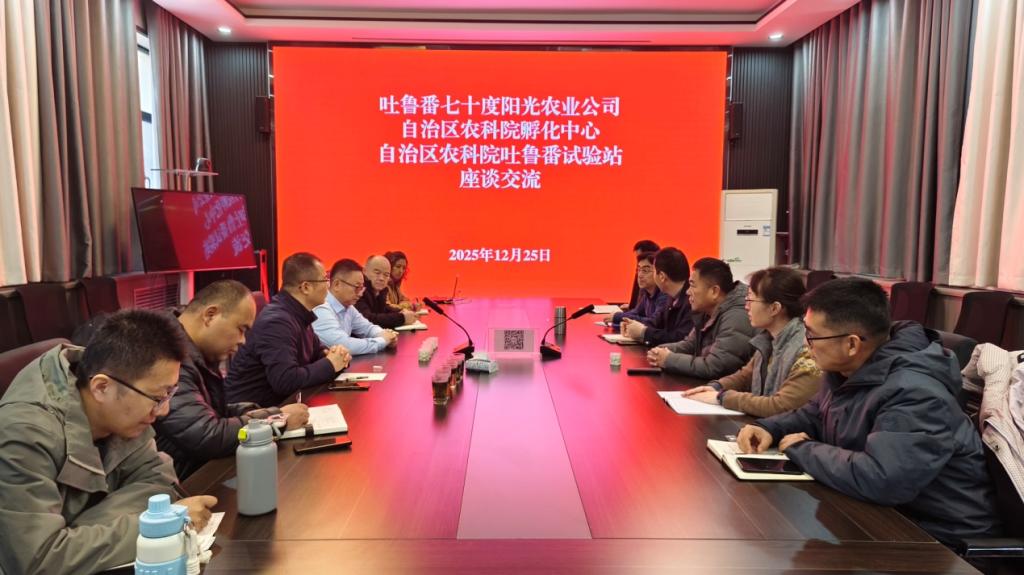12月25日,自治区农科院吐鲁番试验站和科技成果孵化与产业合作中心一行7人赴吐鲁番七十度阳光农业科技有限公司参观考察,并举行座谈交流会。