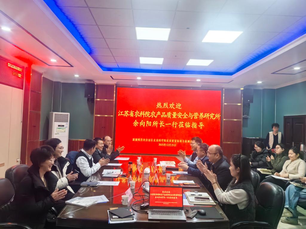 12月25日,江苏省农业科学院农产品质量安全与营养研究所所长余向阳研究员一行应邀来到自治区农科院农业质量标准与检测技术研究所座谈交流。此次会议由质标所所长任红松主持,质标所班子成员、溯控团队、营养团队等各团队首席及青年骨干代表参加了会议。