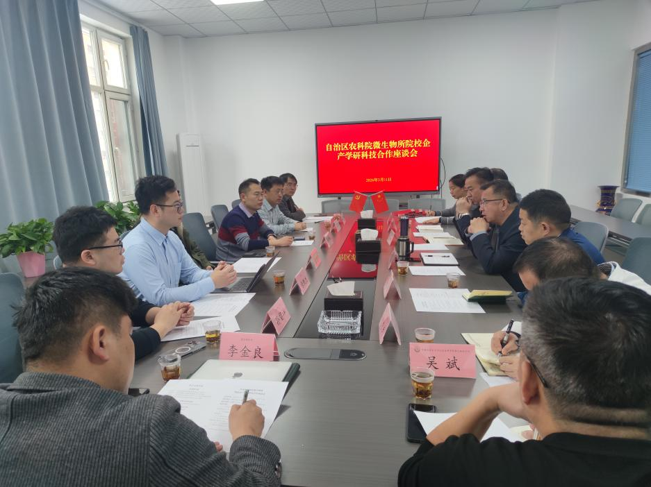 3月11日,自治区农业科学院微生物研究所邀请中国农业科学院生物技术研究所、北京林业大学草学院、新疆大学机械工程学院、上海蓝晶微生物科技有限公司、新疆蓝晶合成生物科技有限公司相关领导及代表,共同召开院校企产学研科技合作座谈会。