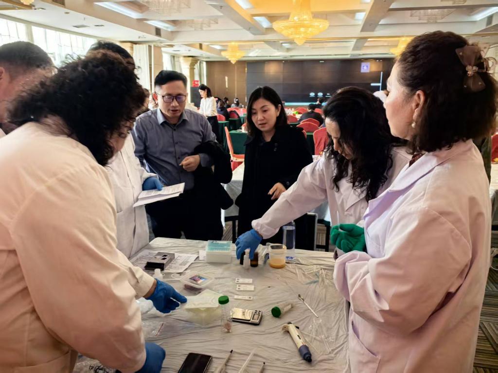 本次培训紧扣基层监管实际需求,采用“理论讲解+现场实操”相结合的模式,重点解读农产品质量安全政策法规、分析新疆农畜产品质量安全现状,详解快速检测技术发展趋势,核心围绕质标所自主研发的胶体金快检产品,详解产品特性与规范操作。该系列快检产品依托胶体金免疫层析技术,具备操作简便、时效性强、灵敏度高的优势,可快速完成各类农产品农兽药残留筛查,为基层监管提供高效技术支撑。