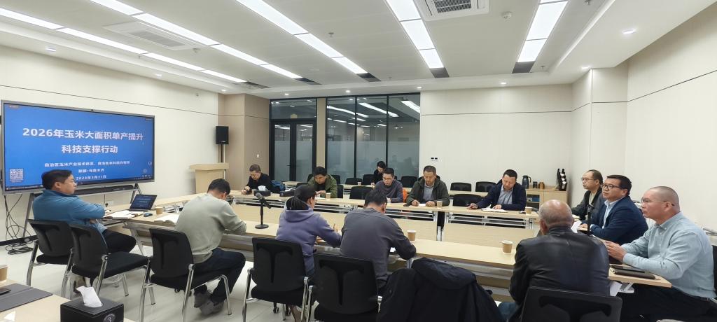 会议深入贯彻2026年中央农村工作会议及自治区党委农村工作会议“深入推进粮食作物大面积单产提升行动”精神,围绕《2026年玉米大面积单产提升科技支撑行动工作方案》,全面部署全年目标任务、技术路径与责任分工,推动科技支撑玉米单产提升行动落地见效。