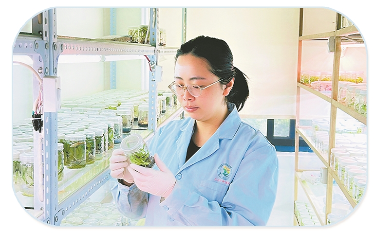图⑦ 湖北省农业科学院科研助理杨捷在查看育种情况。