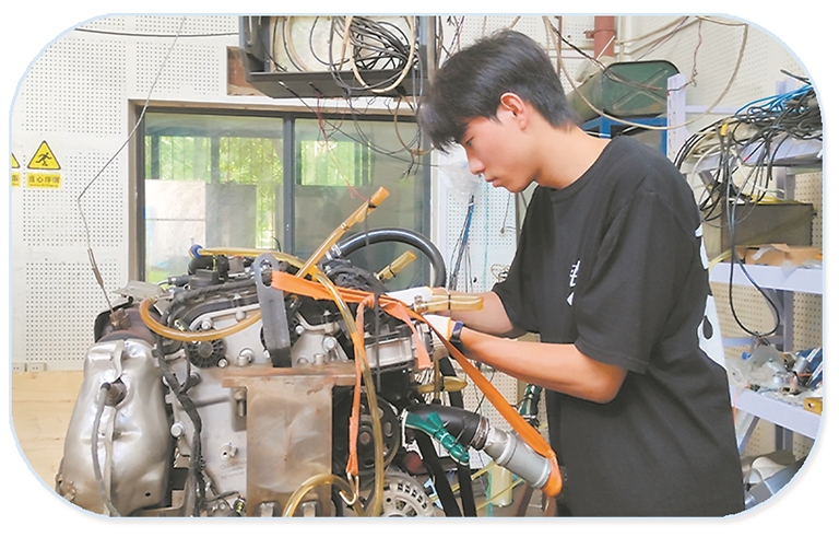 图③ 西华大学海陆空复杂环境高效低碳动力装置团队科研助理李建庚在检查排线。
