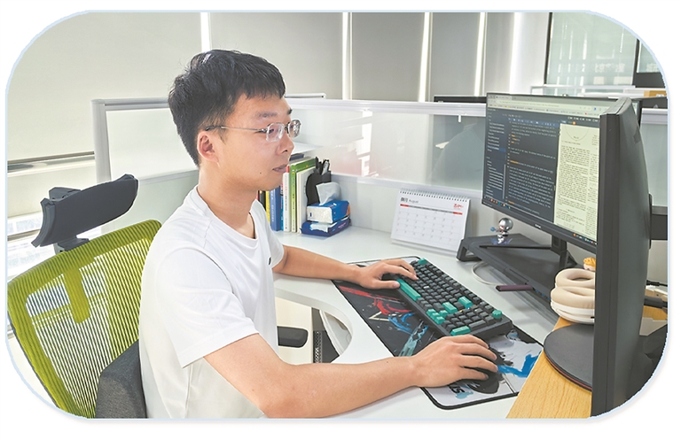图① 北京交通大学电子信息工程学院科研助理安运通在分析钢轨运维数据。