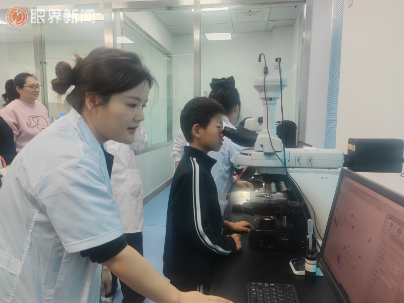 科研人员提前备好载玻片与显微镜,耐心指导小朋友操作:“轻轻把载玻片放在载物台上,慢慢调整准焦螺旋,就能看到种子里的小世界啦。”