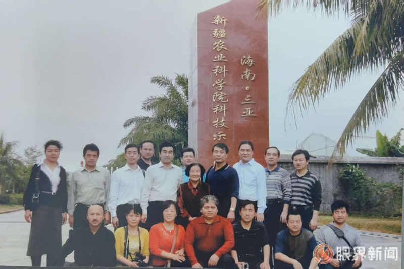 在新疆维吾尔自治区农业科学院海南三亚育种站,吴明珠院士(中)与同事留念。新疆农科院供图
