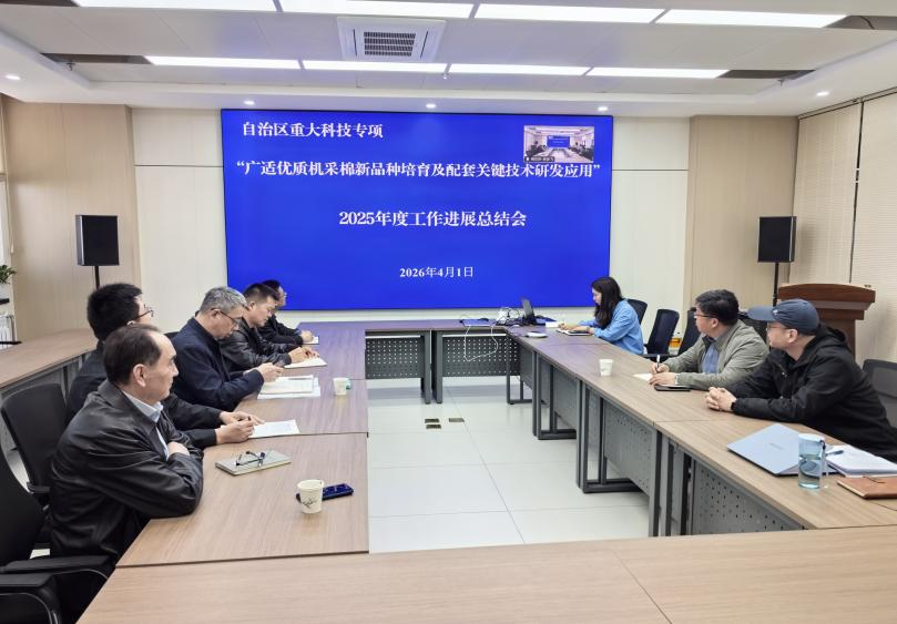 2026年4月1日,自治区重大科技专项“广适优质机采棉新品种培育及配套关键技术研发应用”采用线上线下相结合的方式召开了2025年度工作进展总结会,会议由项目首席张鹏忠研究员主持,各课题负责人、子课负责人和部分项目骨干45人参加会议。会上,项目负责人及6个课题负责人分别就项目(课题)总体情况、主要工作进展、取得阶段性成果、经费使用、存在的问题及下一年度计划等进行了详细汇报,与会专家针对每个课题存在的问题进行了详细的点评和深入的交流,提出了具有针对性的指导建议。最后,项目主持人对下一步工作提出了具体要求:一是各课题按照合同内容继续开展相关研究,认真核对考核指标,圆满完成项目中期检查工作;二是要进一步深化各课题间的融合与衔接,强化团队协同作用,有序推动项目整体实施,合力攻克关键技术难题;三是促进项目成果集成应用和示范推广,助力新疆机采棉稳产、高产、优质和高效生产,为保障新疆棉花产业高质量发展提供坚实的科技支撑。
