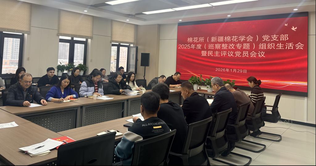 1月29日,棉花所(新疆棉花学会)党支部召开2025年度组织生活会暨民主评议党员会议,院第七督导组到会指导,党支部书记张鹏忠主持会议,支部全体党员参会。