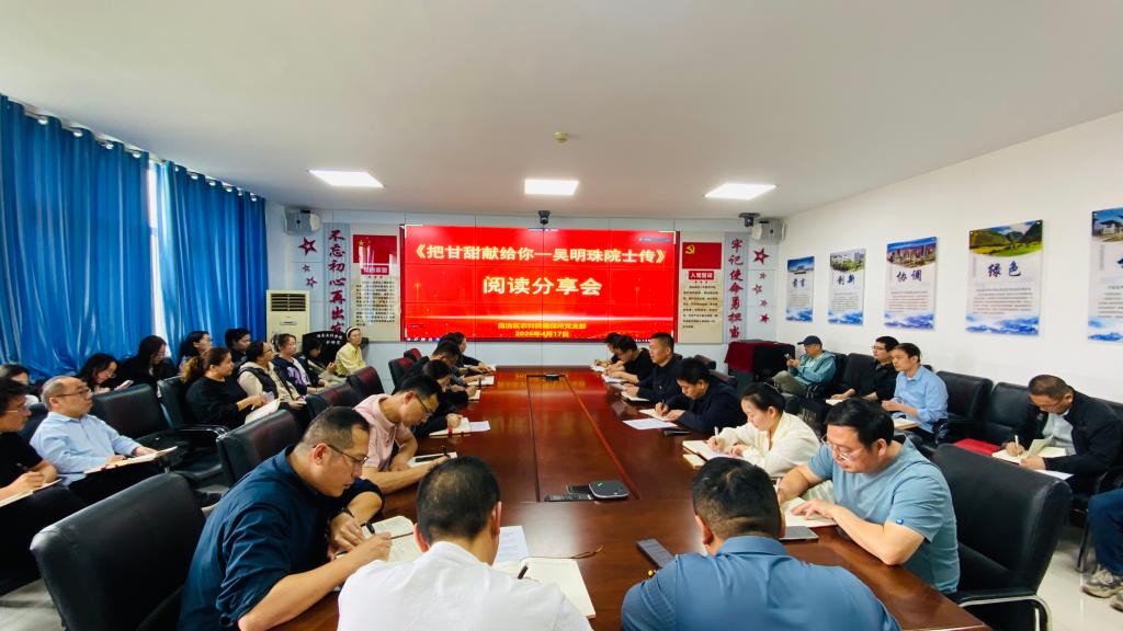 4月17日,自治区农科院植保所组织全所职工开展《把甘甜献给你—吴明珠院士传》阅读分享会。会上集中学习了《求是》杂志发表的习近平总书记重要文章《推动全民阅读,建设书香社会》和总书记关于弘扬科学家精神的重要论述,集中观看了自治区农科院创作和院所职工本色出演的情景剧《把瓜的甘甜献给人民—吴明珠院士》展演视频,来自各创新团队的5名青年博士结合自身学习和工作实际,围绕“读吴明珠传·悟农科精神”交流分享阅读感悟和体会,所领导班子、全所职工近70人参会。