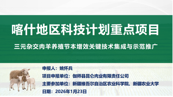 我所饲用微生物与生物饲料创新团队姚怀兵博士作为《三元杂交肉羊养殖节本增效关键技术集成与示范推广》项目负责人,在崔卫东、侯敏研究员的悉心指导下,该项目联合了伽师县昆仑肉业有限责任公司、新疆农业大学等多方力量,聚焦于三元杂交肉羊养殖过程中的成本与效率问题,旨在通过关键技术的集成与创新,实现节本增效的目标,并推动相关技术的示范推广。