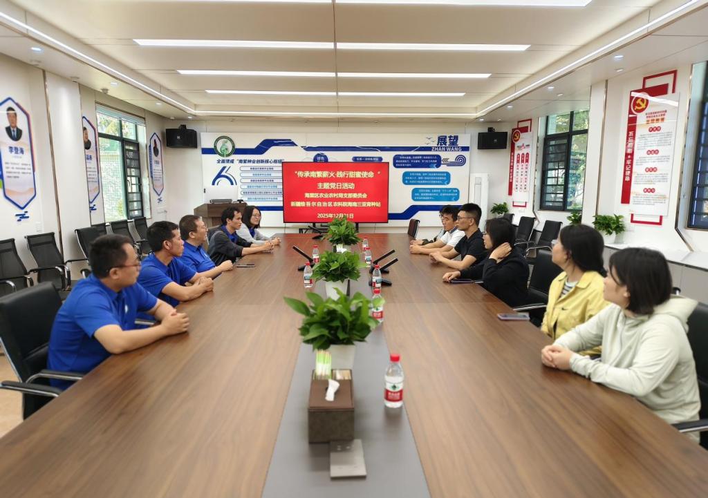 2025年12月31日,三亚市海棠区农业农村局党组织一行莅临新疆维吾尔自治区农科院海南三亚育种站,联合开展主题为“传承南繁薪火·践行甜蜜使命”的党日活动。