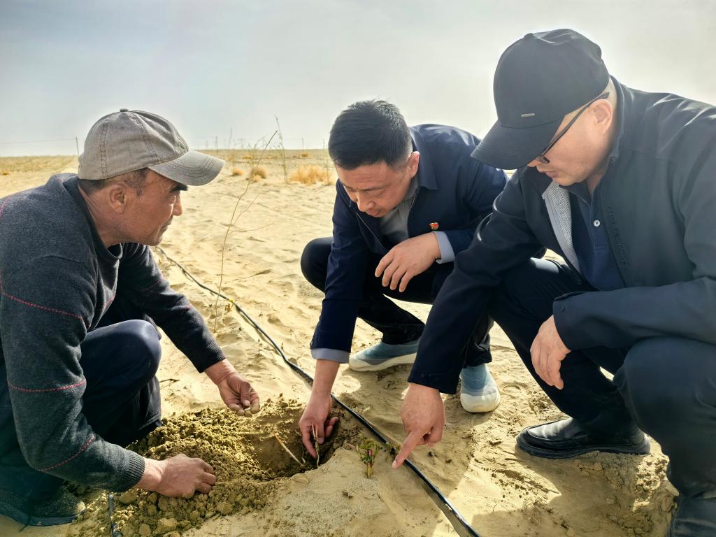 3月31日,特色园艺作物引育及栽培团队研究员蔺国仓、正高级农艺师孙美乐一行,深入于田县阿热勒乡沙产业基地,走进万亩玫瑰种植现场,围绕栽苗定植、滴水施肥、防风管护三大关键环节开展专项技术指导,推动防沙治沙与科学种植深度融合,切实把生态保护和产业发展落到实处。