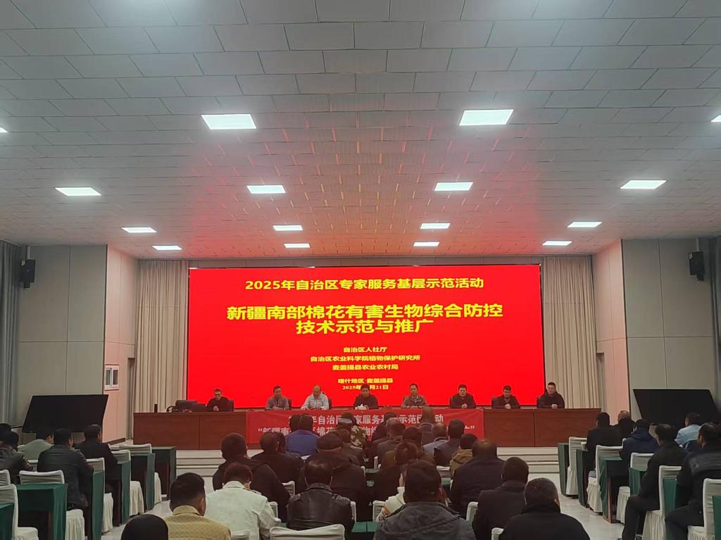 为进一步巩固拓展脱贫攻坚成果,全面助力乡村振兴战略实施,切实发挥高层次专家服务基层的引领带动作用,近日,自治区农业科学院植物保护研究所精心组织并成功实施了“新疆南部棉区棉花有害生物综合防控技术示范与推广”专家服务基层示范团活动。此次活动汇集国内、疆内顶尖植保专家,深入库尔勒、库车、麦盖提等核心优势棉区,为基层农技人员和广大棉农送去急需的科技“及时雨”。本次示范团活动精准对接南疆棉区产业痛点,特...
